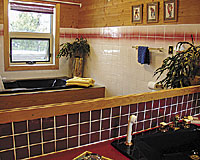 Top floor with queen size bed, cable TV, private bath, Jacuzzi & deck with mountain view. |